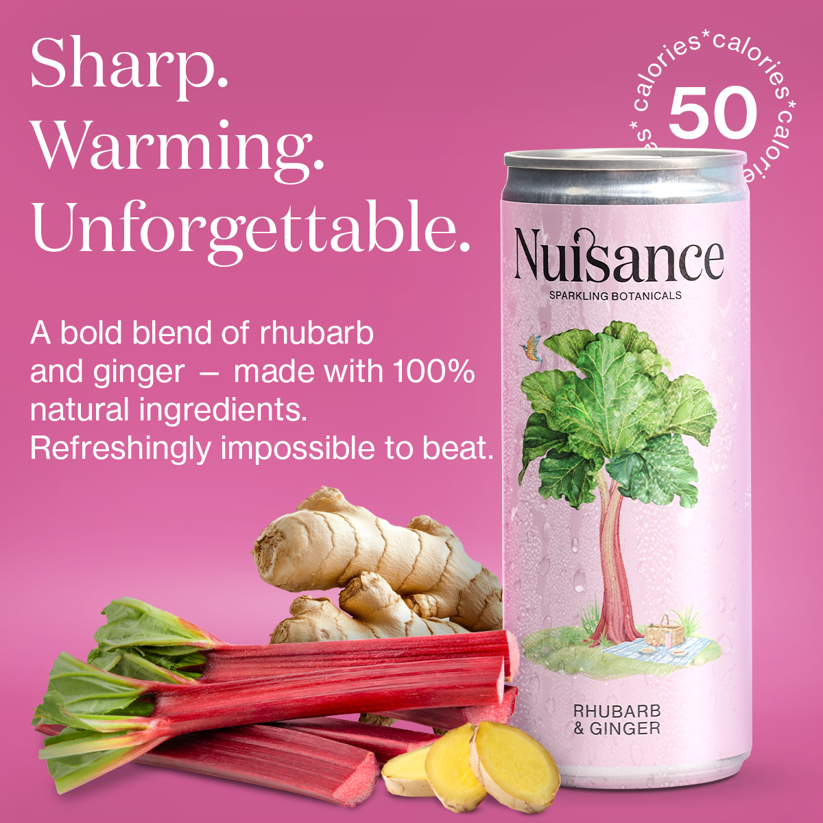 Made with 100% natural ingredients, this refreshing drink pairs the sharp, sweetness of rhubarb with a warm zing of ginger. It’s sharp, it’s sweet, and it’s impossible to beat!